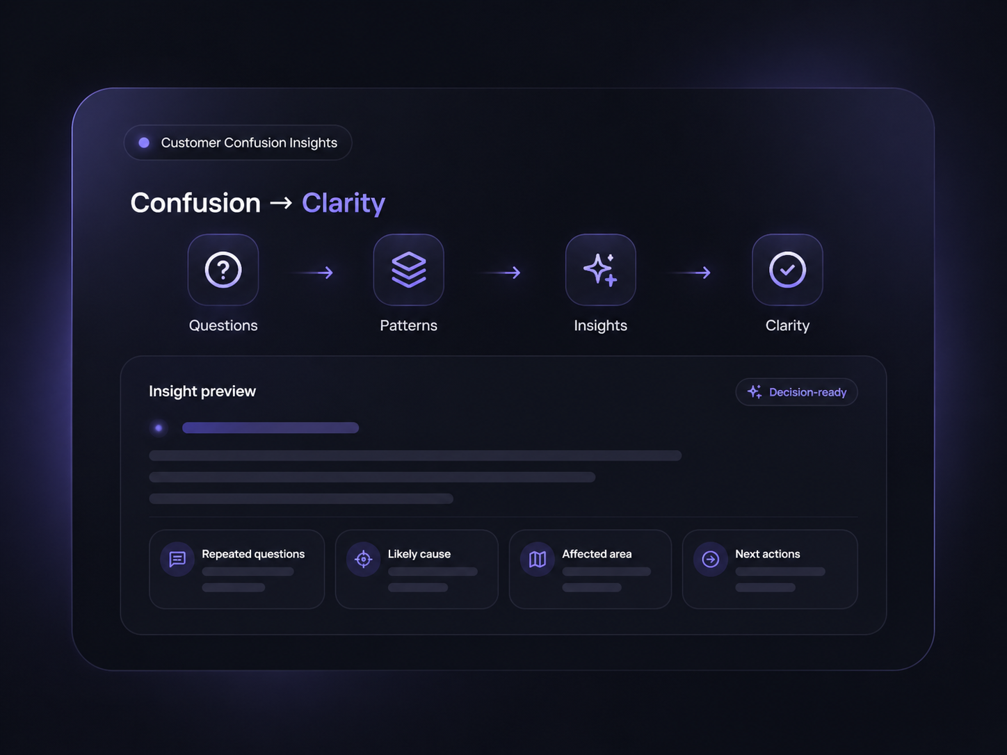 Sol Helps turns real customer questions into clarity signals, recurring patterns, and better decisions about what to fix next.